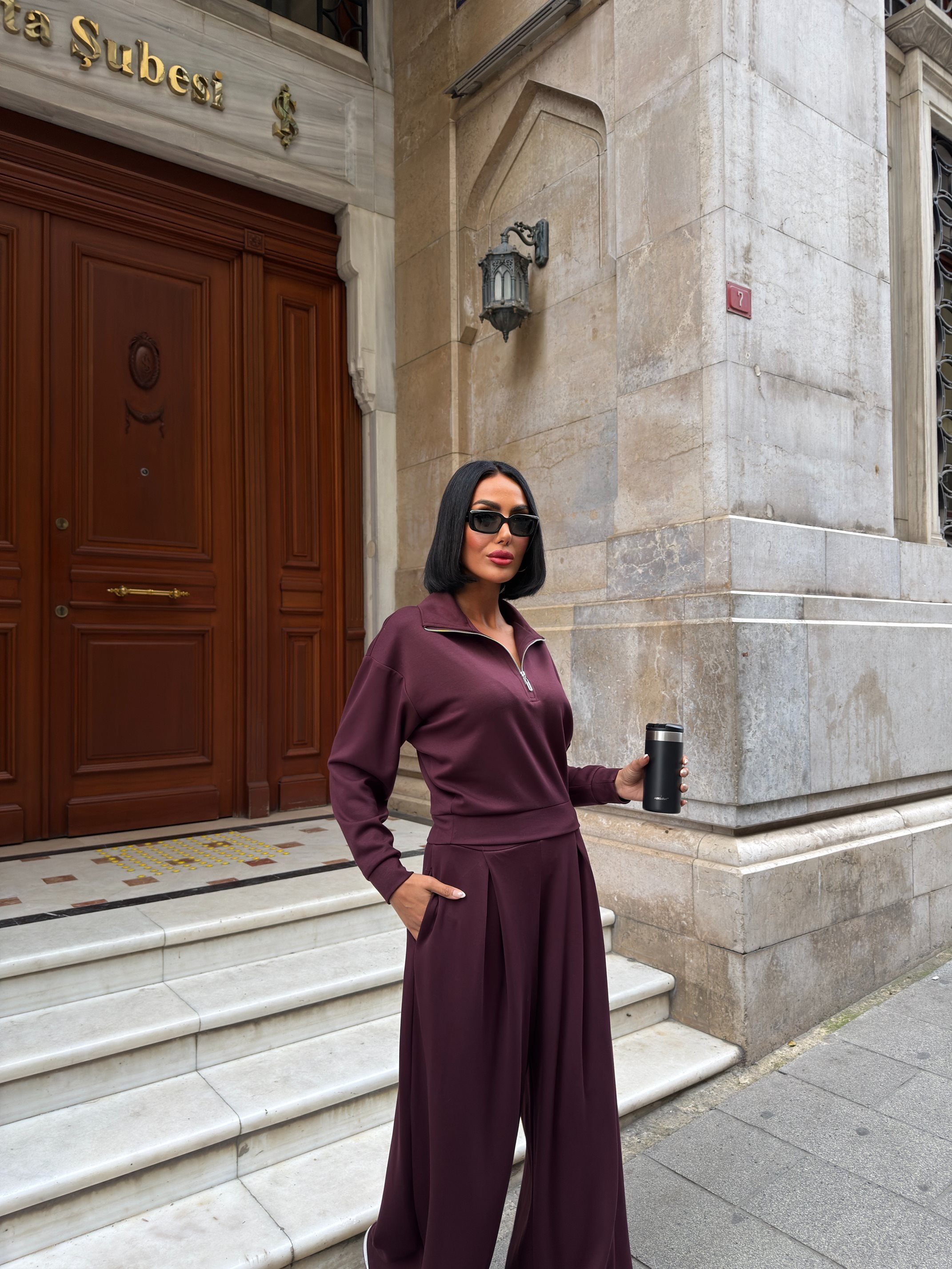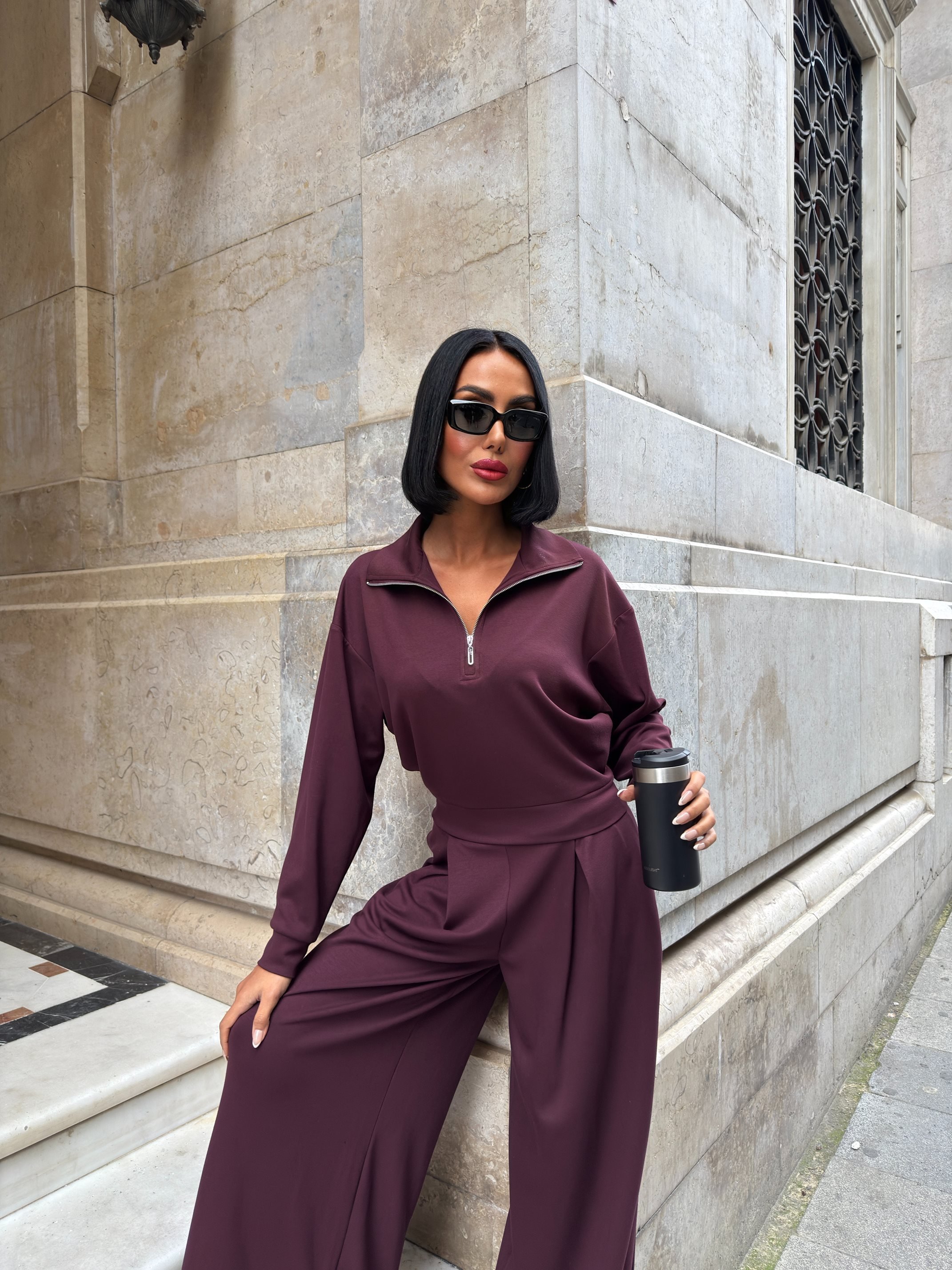 3109 YARIM FERMUARLI TAKIM BURGUNDY - BORDO