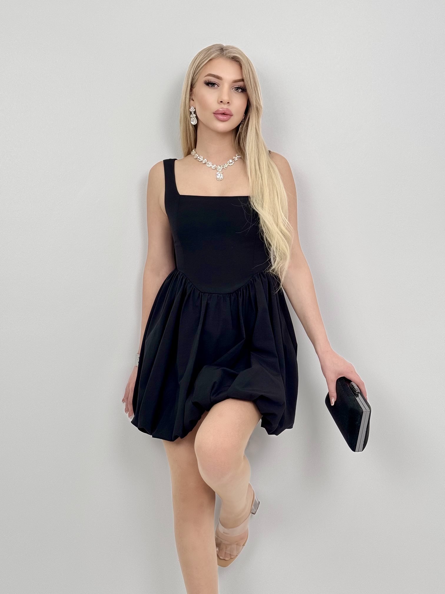 4003 TERİKOTON GİPELİ BALON ELBİSE BLACK - SİYAH