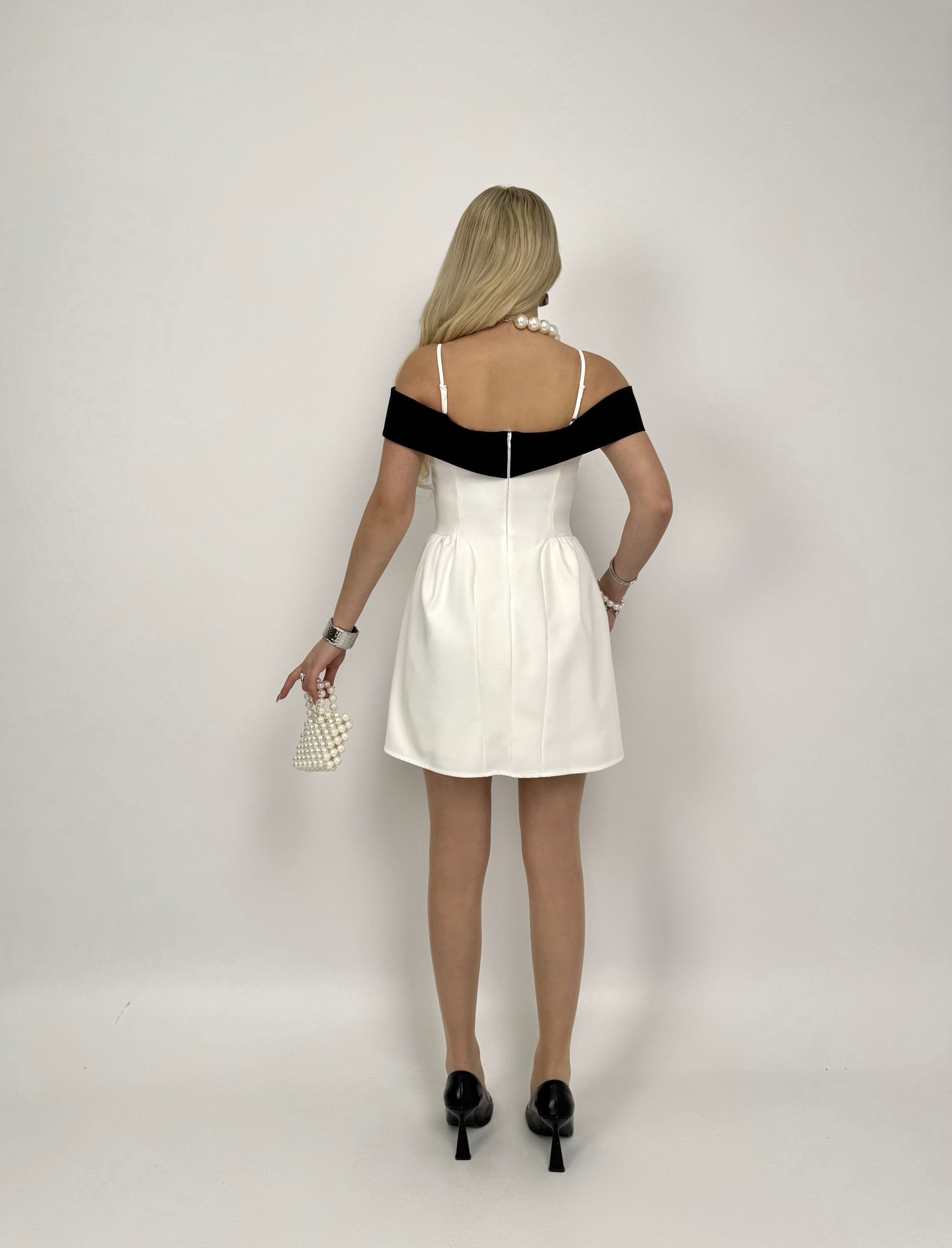 4006 ASKILI GÖGÜS ALERLİ KISA ELBİSE WHİTE - BEYAZ