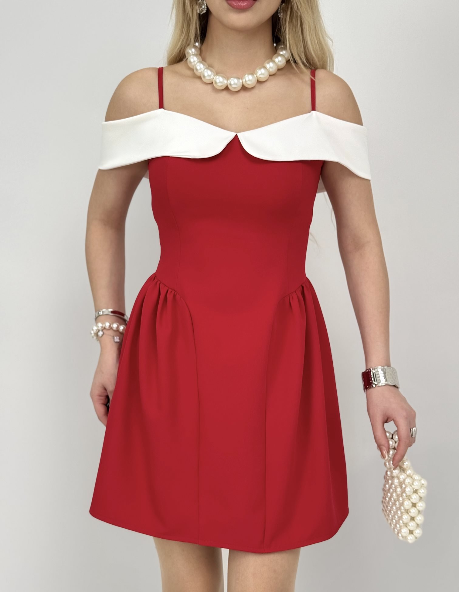 4006 ASKILI GÖGÜS ALERLİ KISA ELBİSE RED - KIRMIZI