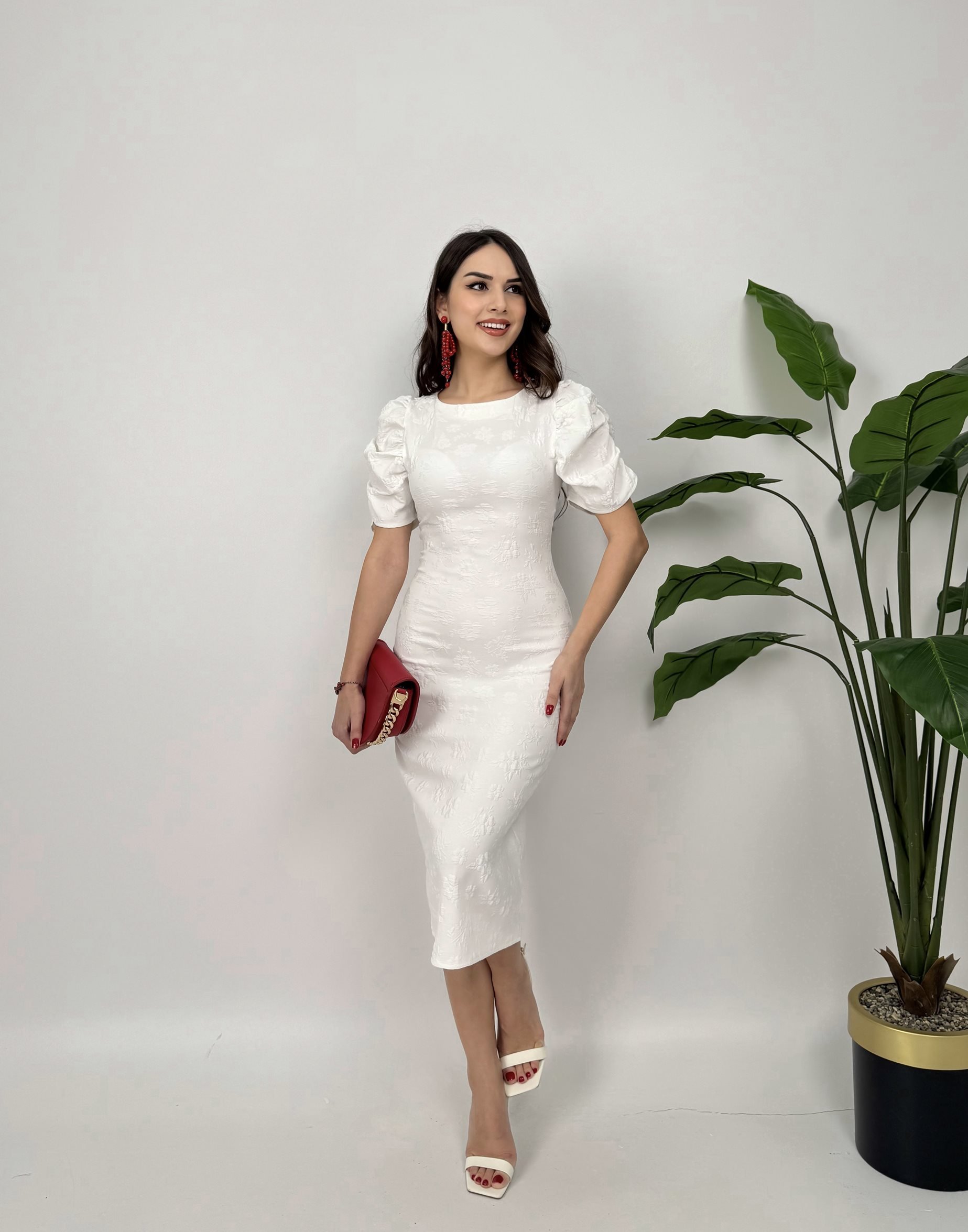 4026 KABARTMA POLYESTER ELBİSE WHİTE - BEYAZ