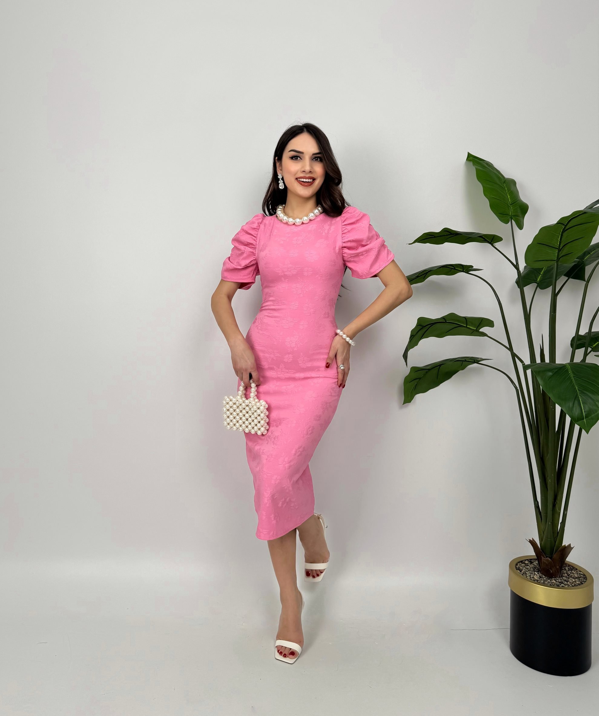 4026 KABARTMA POLYESTER ELBİSE PİNK - PEMBE